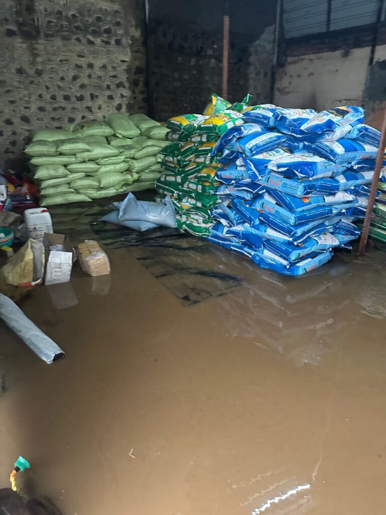 गोडाऊन मध्ये पाणी साठल्याने खते पाण्यात भिजली