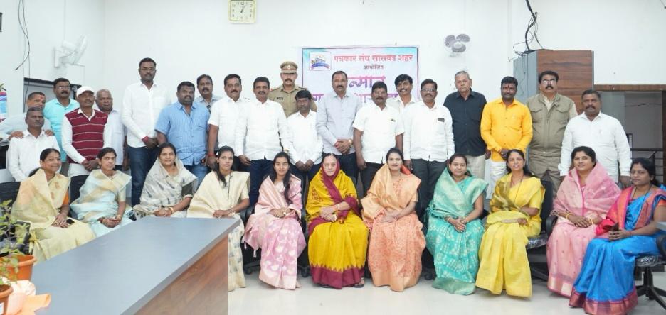 सर्व नगरसेवक व नगराध्यक्ष यांना तुळशीचे रोप देऊन शाल घालून पत्रकारांच्या वतीने सन्मानित करण्यात आले