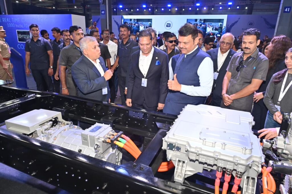 तत्पूर्वी मुख्यमंत्री श्री.फडणवीस यांच्या हस्ते ब्लू एनर्जी मोटर्सतर्फे निर्मित भारताच्या पहिल्या स्वॅपेबल बॅटरी असलेल्या हेवी ड्युटी इलेक्ट्रिक ट्रकचा शुभारंभ करण्यात आला. यावेळी कंपनीच्या मुंबई–पुणे इलेक्ट्रिक कॉरिडॉरचे उद्घाटनही करण्यात आले.