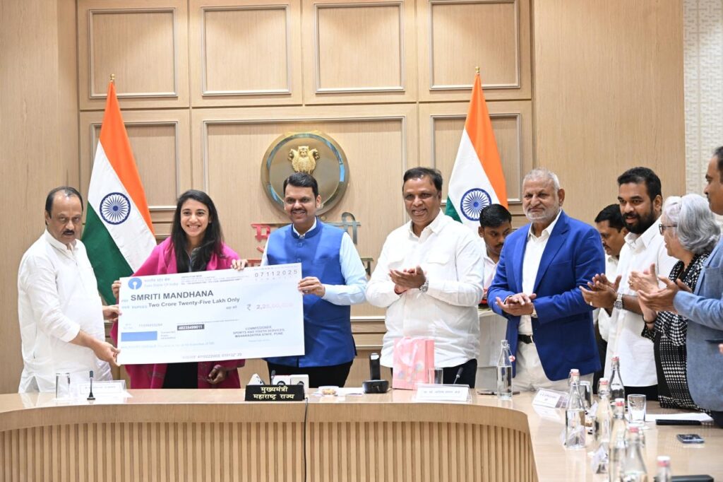 महिला क्रिकेट संघाची उपकर्णधार स्मृती मानधना, जेमिमाह रॉड्रिग्ज, राधा यादव यांना प्रत्येकी २ कोटी २५ लाख, तर प्रशिक्षक अमोल मुजुमदार यांना २२ लाख ५० हजार आणि सर्व सहकारी यांना प्रत्येकी ११ लाख रुपये व सन्मानचिन्ह प्रदान करून त्यांचा सत्कार मुख्यमंत्री देवेंद्र फडणवीस यांनी केला.
