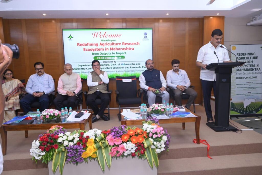 महाराष्ट्र शासन, कृषी विभाग आणि महाराष्ट्र कृषी शिक्षण आणि संशोधन परिषद यांच्या संयुक्त विद्यमाने महाराष्ट्र राज्य अध्यापक विकास संस्था, पुणे येथे 29 ते 30 ऑक्टोबर 2025 दरम्यान आयोजित “महाराष्ट्रातील कृषी संशोधन परिसंस्थेची पुनर्रचना: निष्पत्तीकडून प्रभावाकडे” (Redefining Agriculture Research Ecosystem in Maharashtra: From Outputs to Impact) या दोन दिवसीय कार्यशाळेचं उद्धाटनप्रसंगी ते बोलत होते.