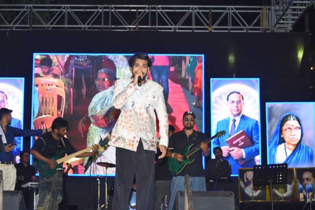 छत्रपती शिवाजी महाराज उद्यान, बोपोडी येथे पार पडलेल्या या कार्यक्रमात आंबेडकरी चळवळीतील लोकप्रिय गायक आयकॉन स्टार राहुल साठे आणि त्यांच्या टीमने सादर केलेल्या दमदार भीमगीतांनी प्रेक्षकांना मंत्रमुग्ध केले. त्यांच्या जोशपूर्ण सादरीकरणाला उपस्थितांकडून उत्स्फूर्त दाद मिळाली.