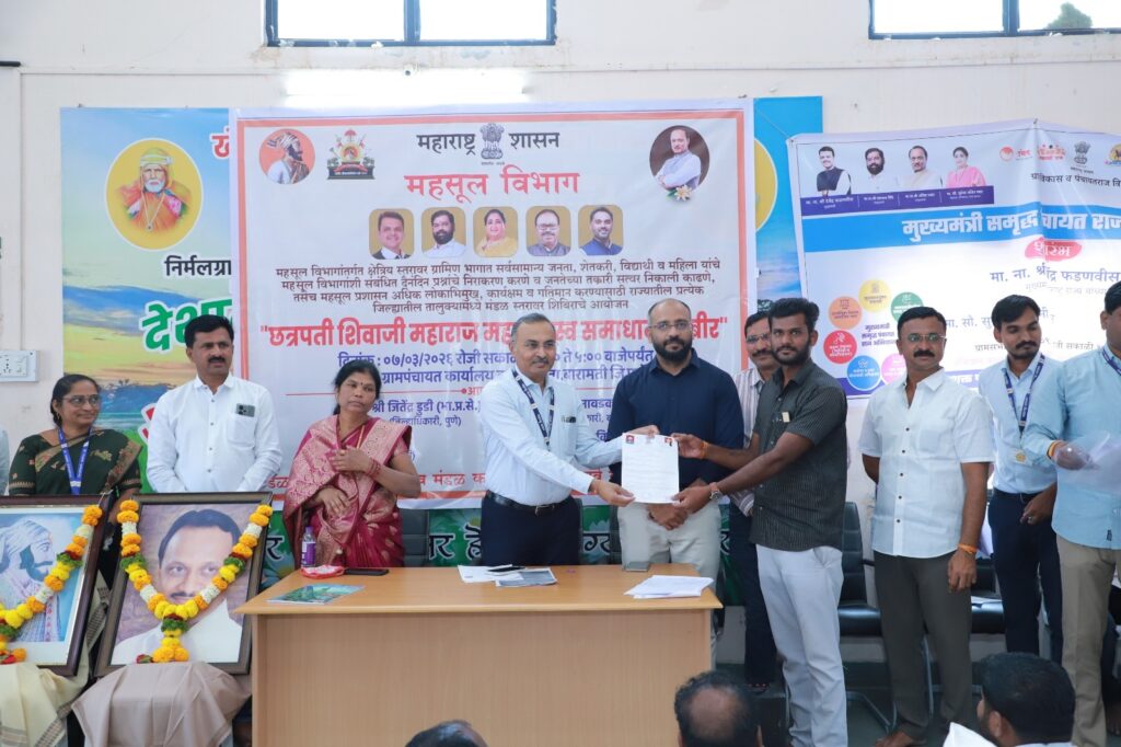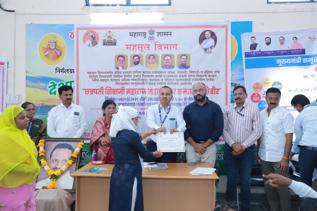 छत्रपती शिवाजी महाराज महाराजस्व समाधान शिबीर आयोजनाबाबत माहिती देतांना श्री. रावडे म्हणाले, महसूल विभागातील प्रलंबित फेरफार निकाली काढणे, ७/१२ अभिलेख दुरुस्ती, अकृषक तरतुदी सुधारणा, कमी जास्त पत्रके तयार करणे, पाणंद रस्ते, ई-मोजणी अर्ज, जिवंत ७/१२ टप्पा २ अंतर्गतच्या नोंदीबाबत मार्गदर्शन केले. विविध विभागाच्या योजना व सेवांविषयी मार्गदर्शन केले.