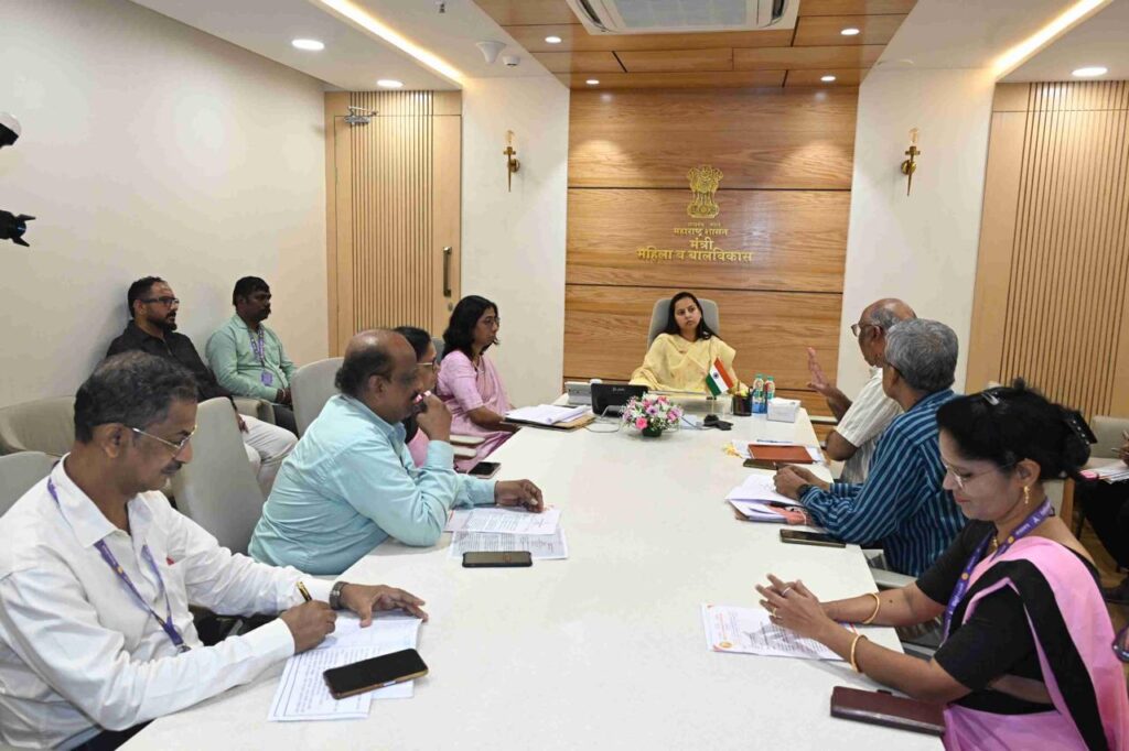 महिला व बालविकास मंत्री आदिती तटकरे यांच्या अध्यक्षतेत मंत्रालय येथील दालनात अंगणवाडी कर्मचाऱ्यांच्या विविध समस्यांसंदर्भात बैठक झाली. बैठकीत एकात्मिक बालविकास प्रकल्प आयुक्त माधवी सरदेशमुख, सहसचिव वि.रा.ठाकूर, अवर सचिव श्री. कुलकर्णी, भारतीय मजदूर संघ महाराष्ट्र प्रदेशचे अध्यक्ष अनिल ढुमणे आणि अंगणवाडी सेविका उपस्थित होत्या.