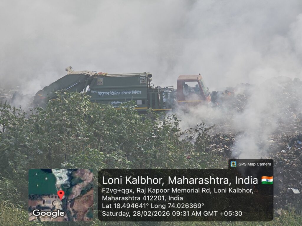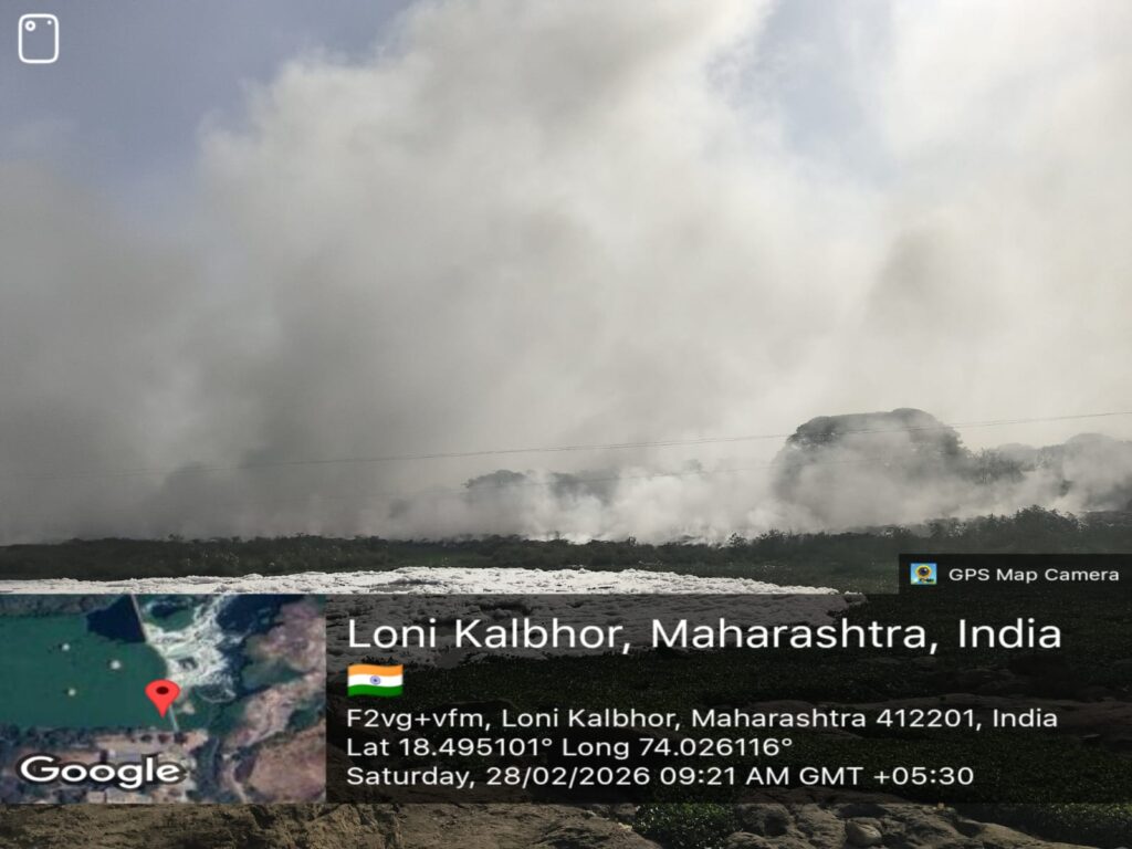 Loni Kalbhor Mula-Mutha riverbed garbage fire creates huge plume of toxic smoke in the area; Student hospitalized due to respiratory problems; Atmosphere of fear in the area