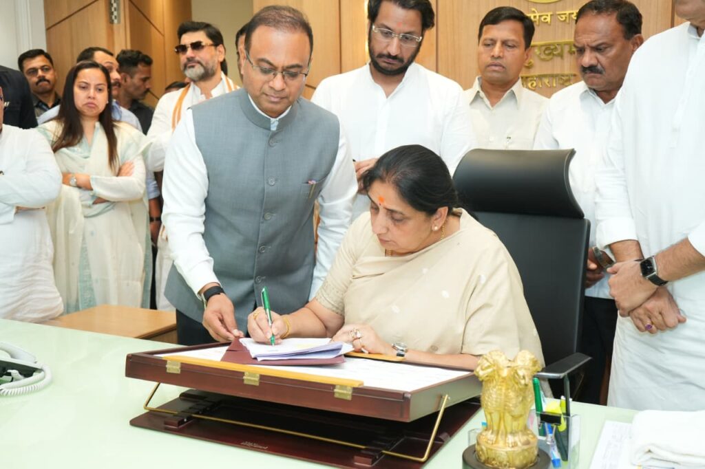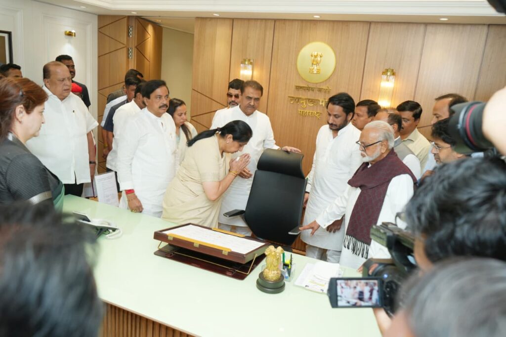 मुंबई – महाराष्ट्राच्या राजकीय इतिहासात आजचा दिवस सुवर्णाक्षरांनी नोंदवला गेला. राज्याच्या पहिल्या महिला उपमुख्यमंत्री म्हणून श्रीमती सुनेत्रा वहिनी अजितदादा पवार यांनी आज विधिवतपणे उपमुख्यमंत्री पदाचा कार्यभार स्वीकारला.