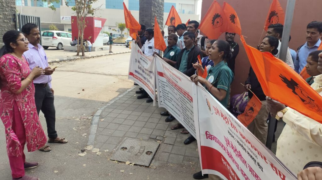 पुणे मेट्रो रेल कामगार संघ जिंदाबाद! या घोषणांनी परिसर दणाणून गेला होता