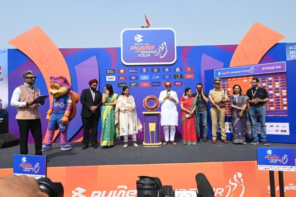 उपमुख्यमंत्री पवार आणि केंद्रीय क्रीडा व युवक कल्याण राज्यमंत्री रक्षा खडसे यांच्या हस्ते ‘पुणे ग्रँड टूर’च्या अंतिम टप्प्याला श्री शिवछत्रपती क्रीडा संकुल, म्हाळुंगे-बालेवाडी येथे झेंडी दाखवून शुभारंभ करण्यात आला.